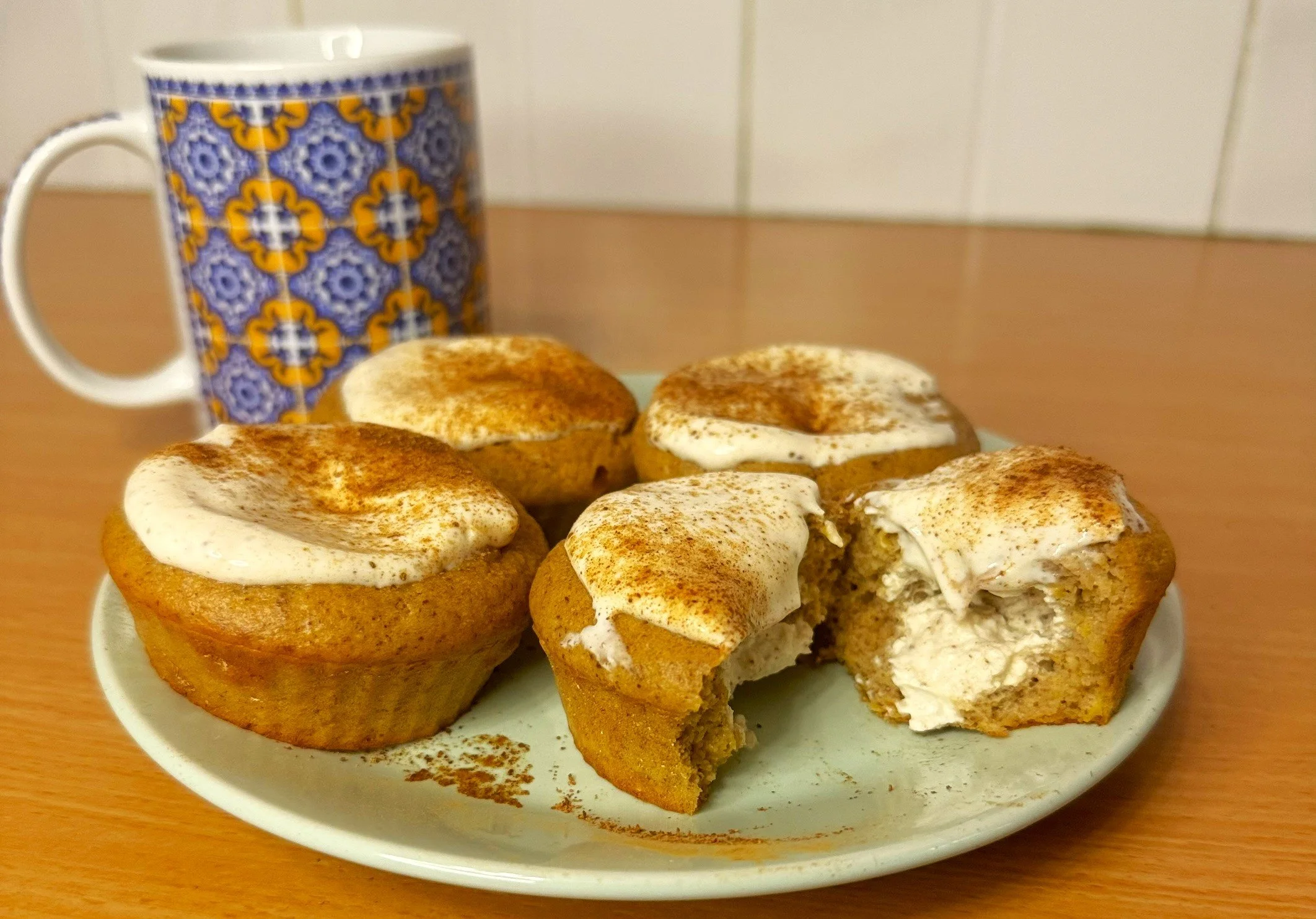 4.) Για την γέμιση με το τυρί κρέμα, βάζουμε όλα τα υλικά σε ένα μπολάκι, ανακατεύουμε και βάζουμε από 1 κ.γ σε κάθε cupcake. Την υπόλοιπη γέμιση ( αν περισσέψει) μπορούμε να την βάλουμε από πάνω.