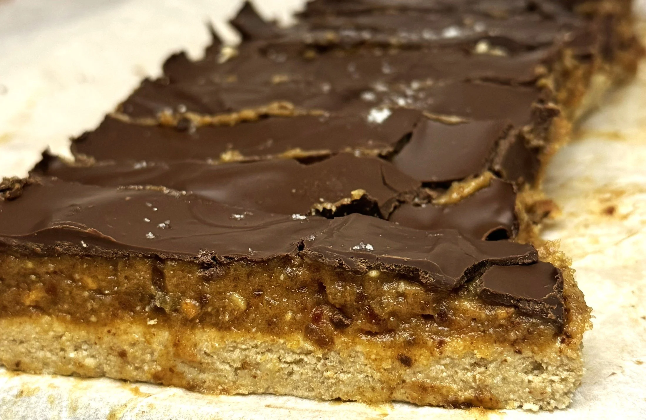 5.) Κόβουμε σε 10 ίσα κομμάτια των 60 γρ. και έτοιμες οι healthy snickers.