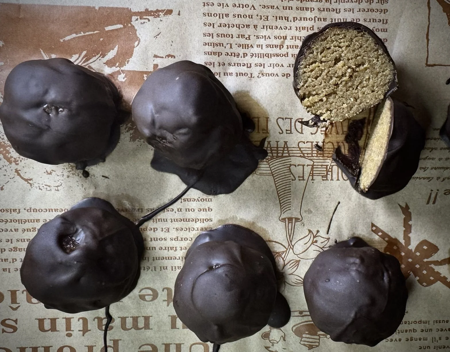 4.) Λιώνουμε την κουβερτούρα και βουτάμε τα μπαλάκια.